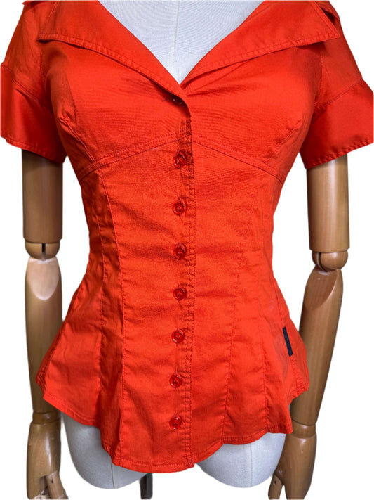Armani Jeans, Orange Cotton Paneled Top 2001