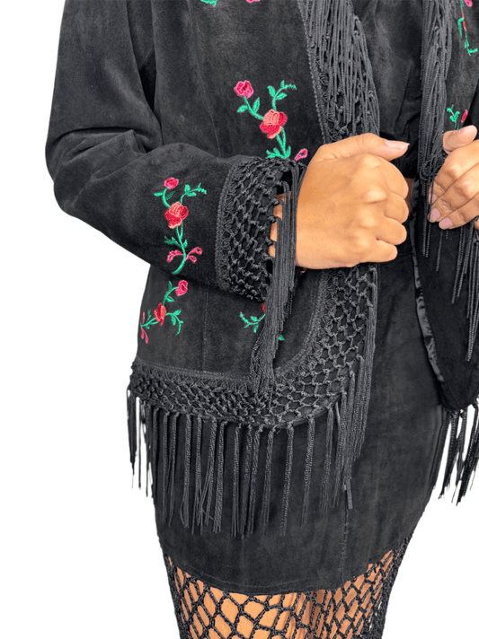 Black Suede Top, Skirt, Jacket & Hat Set Y2K