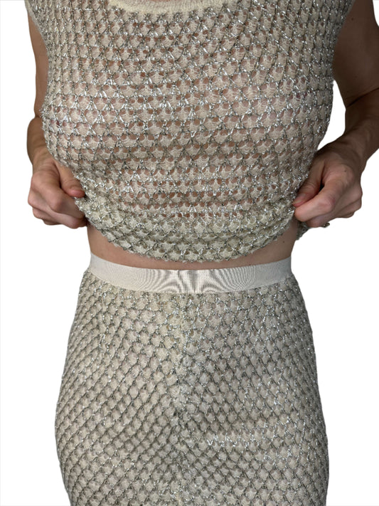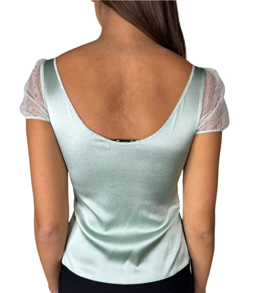 Christian Dior Silk Top in Mint Green w/ Sheer Sleeves Y2K