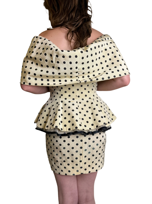 Expo Nite, Cream & Black Polka Dot Blazer & Skirt 1980s