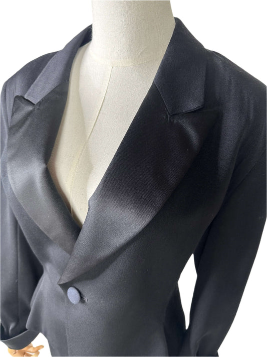 Diani, Black Blazer Jacket w/ Rhinestone Lapel 1980s
