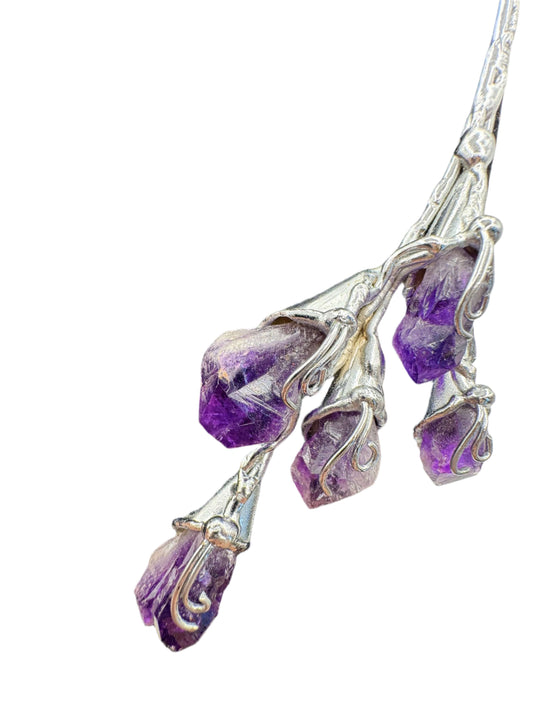 Silver Plated & Amethyst Bar Necklace 1990s