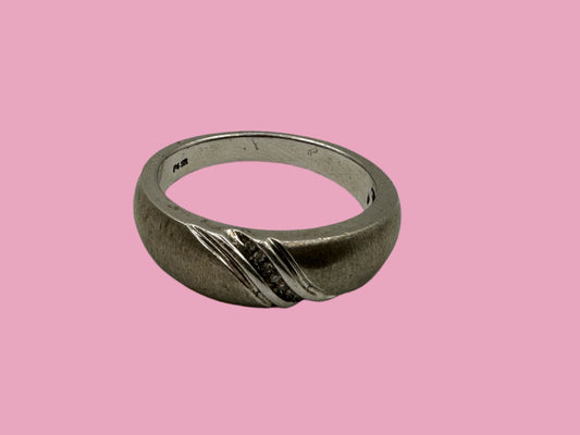 Diamond & Sterling Silver Wedding Band 1980s