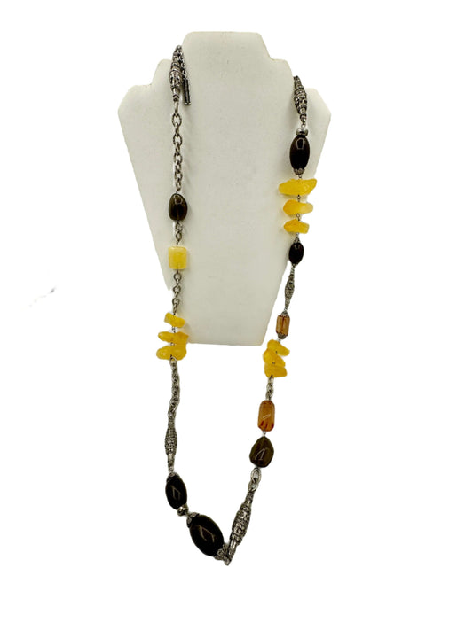 Raw Amber Beaded Statement Necklace 1990s