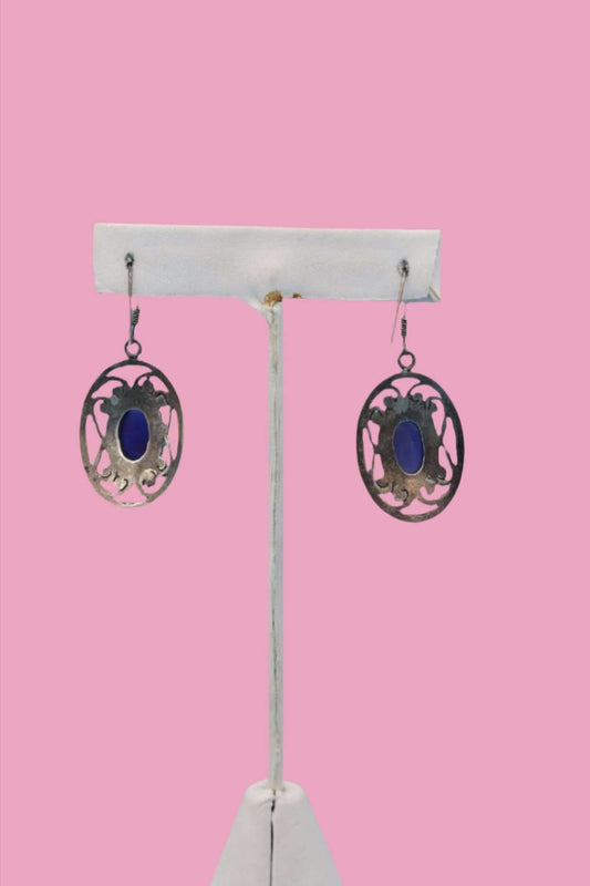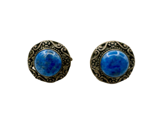 Lapis & Sterling Round Clip Earrings 1980s