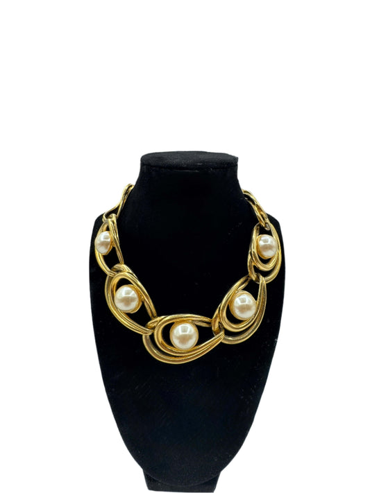 Givenchy, Gold Statement Link & Pearl Necklace 1980s