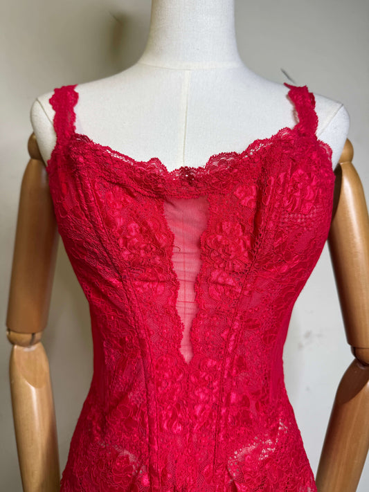 Christian Dior Red Sheer Lace Corset & Panty Set 1980s