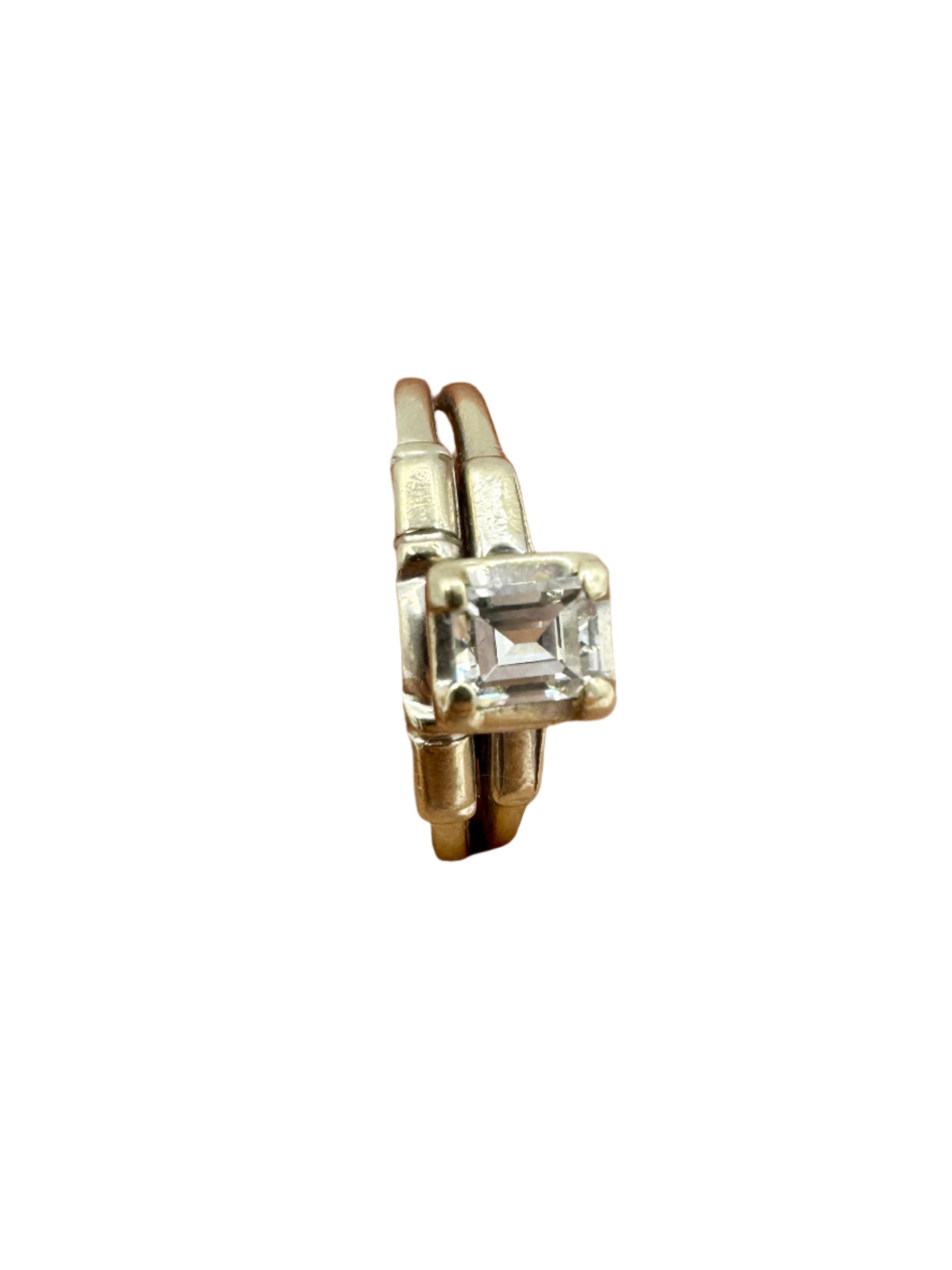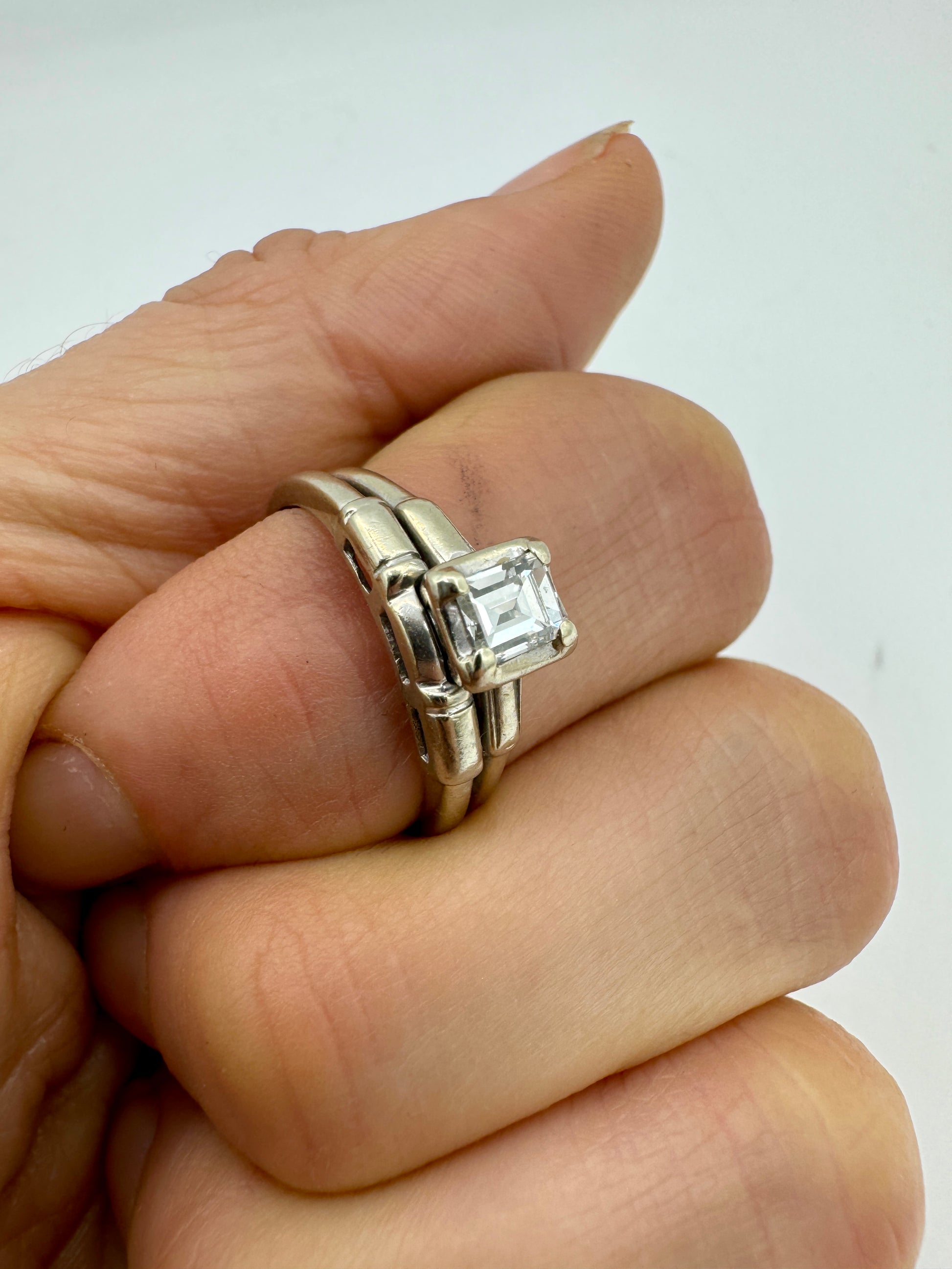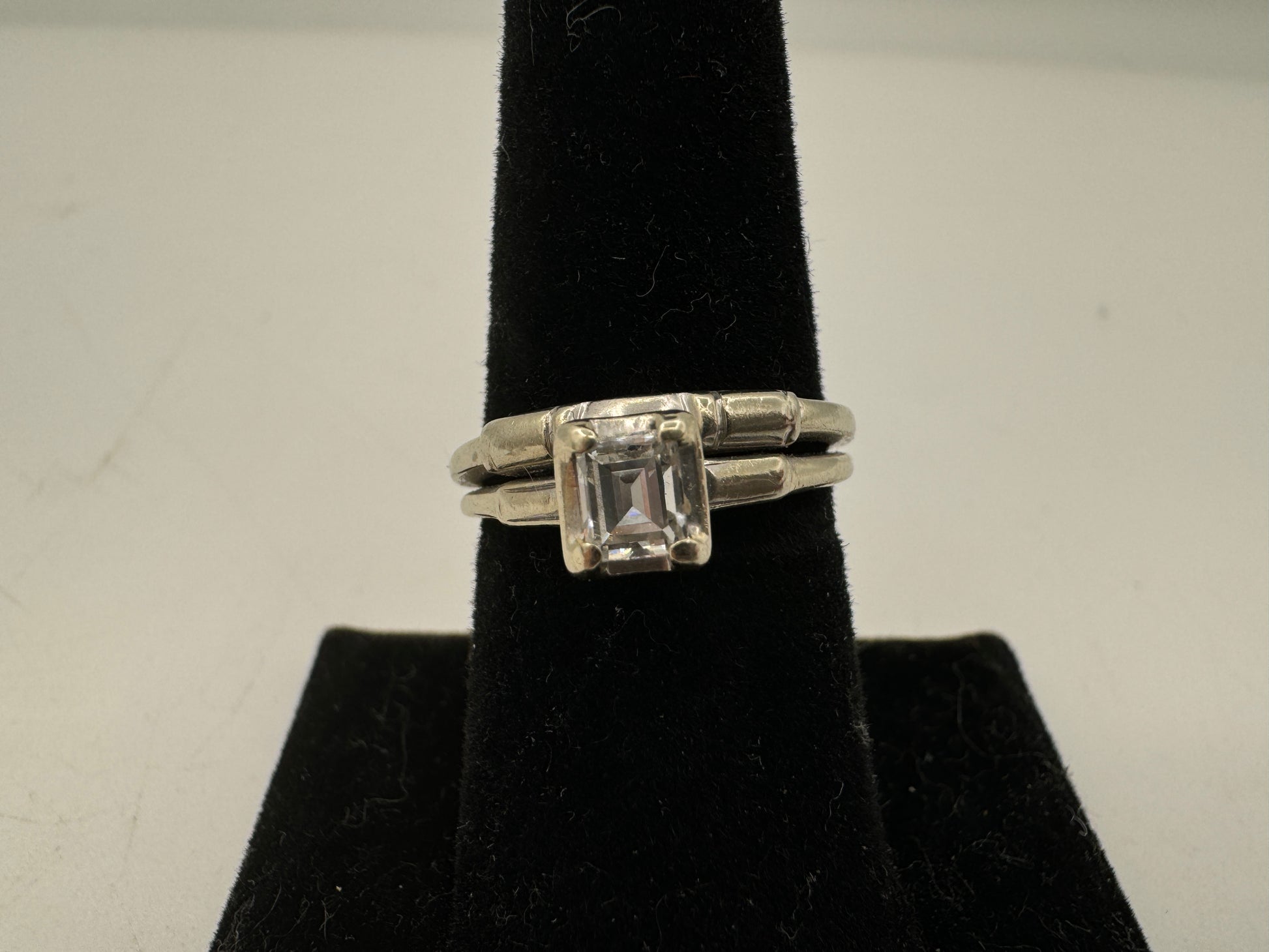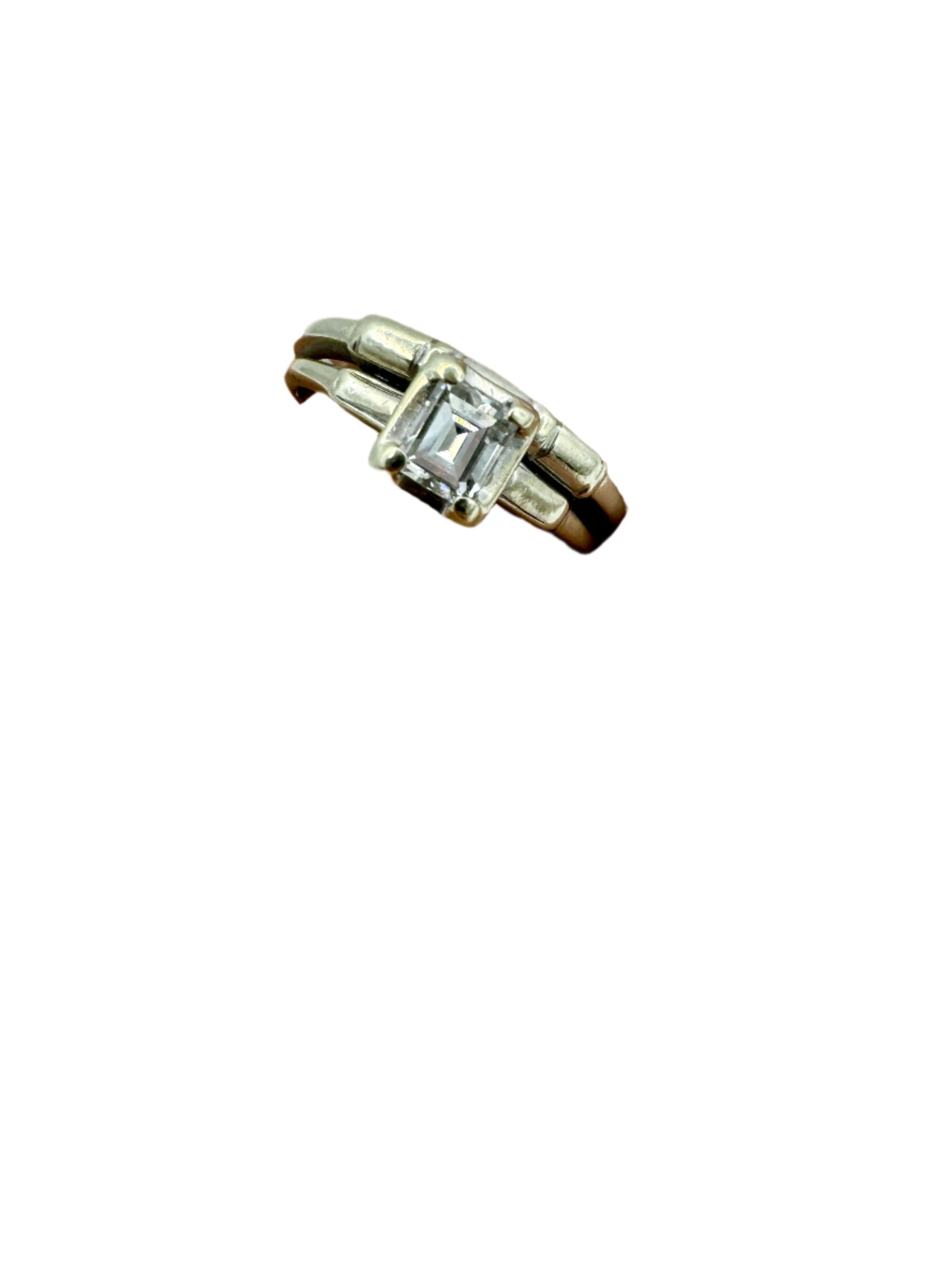 14 Kt White Gold Diamond Engagement & Wedding Ring Setb 1940s