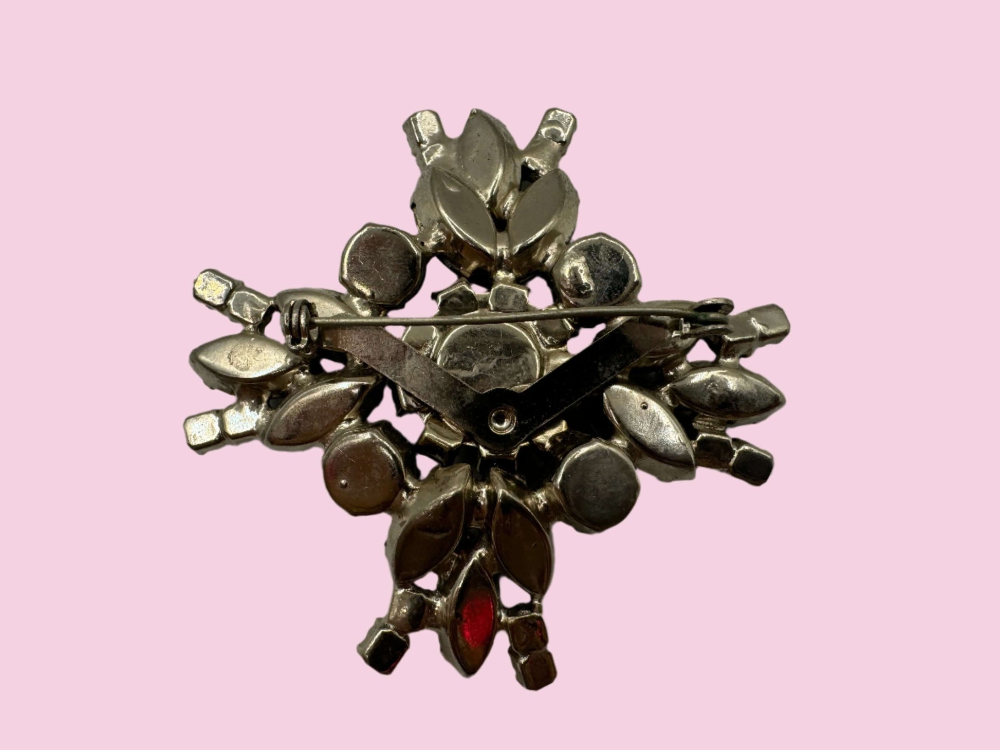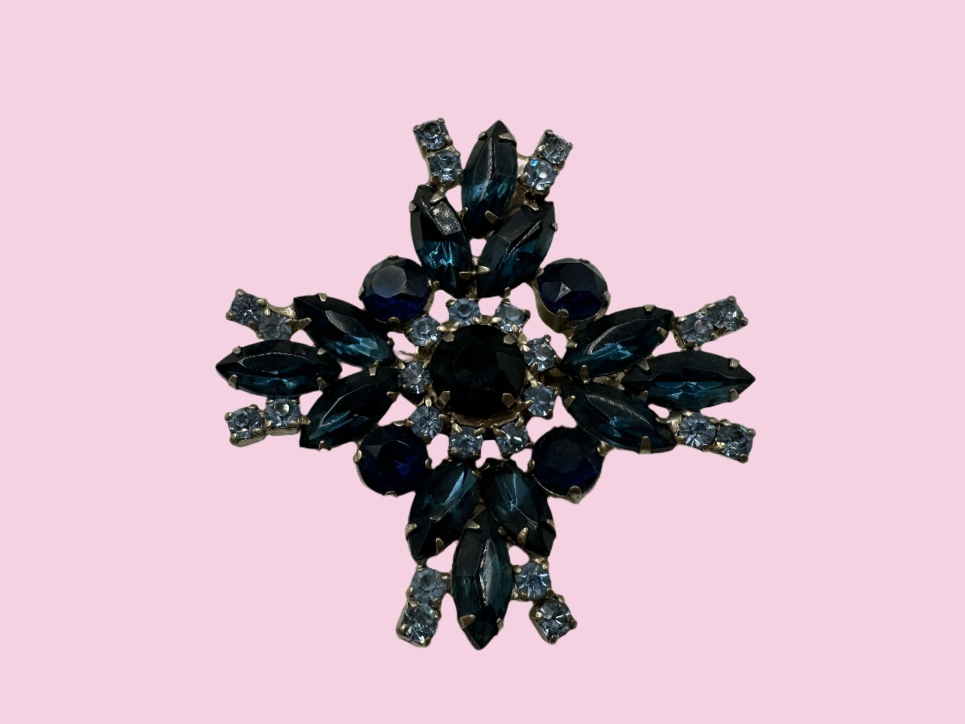 Blue Rhinestone Starburst Brooch / Pin 1950s