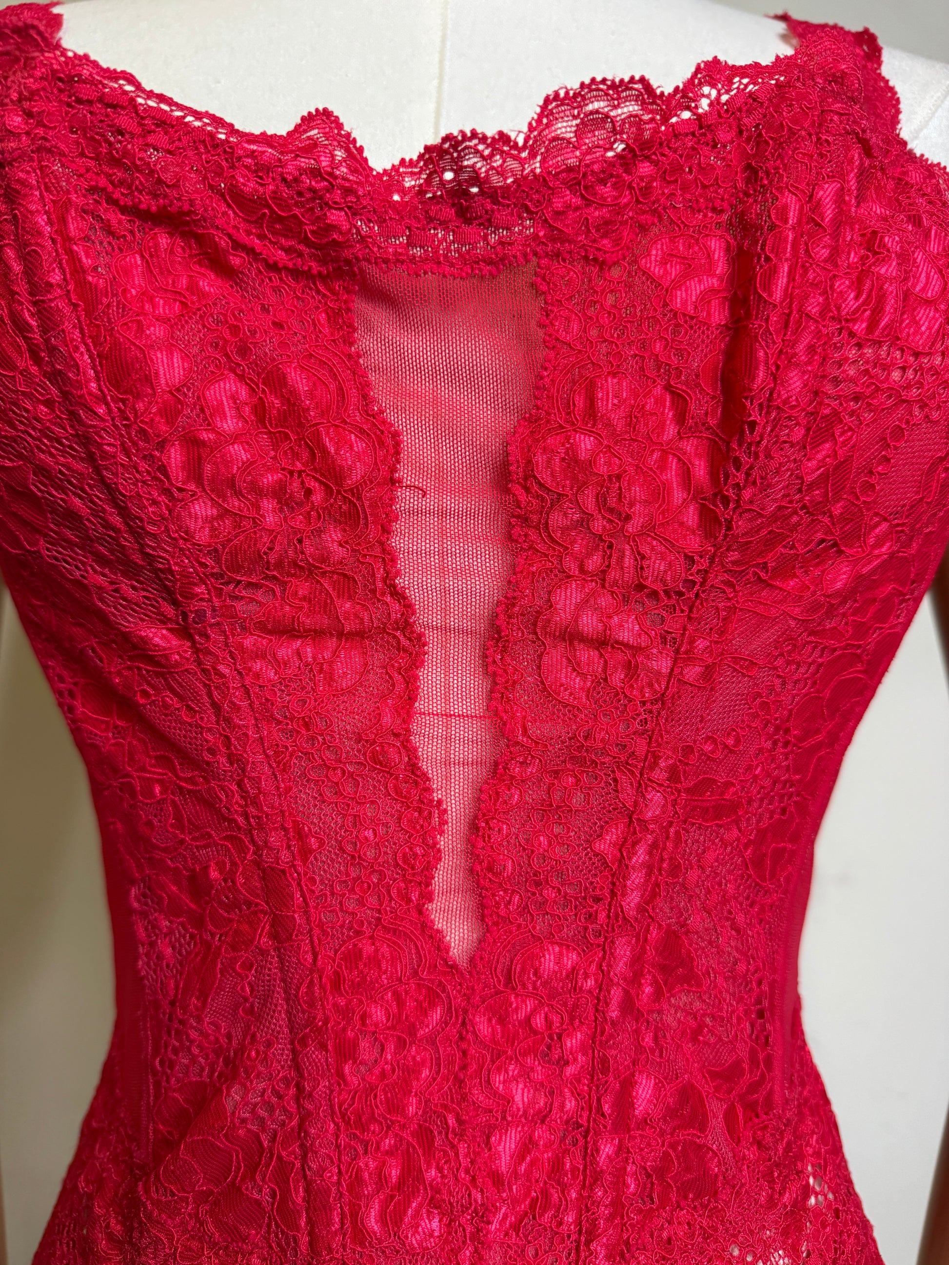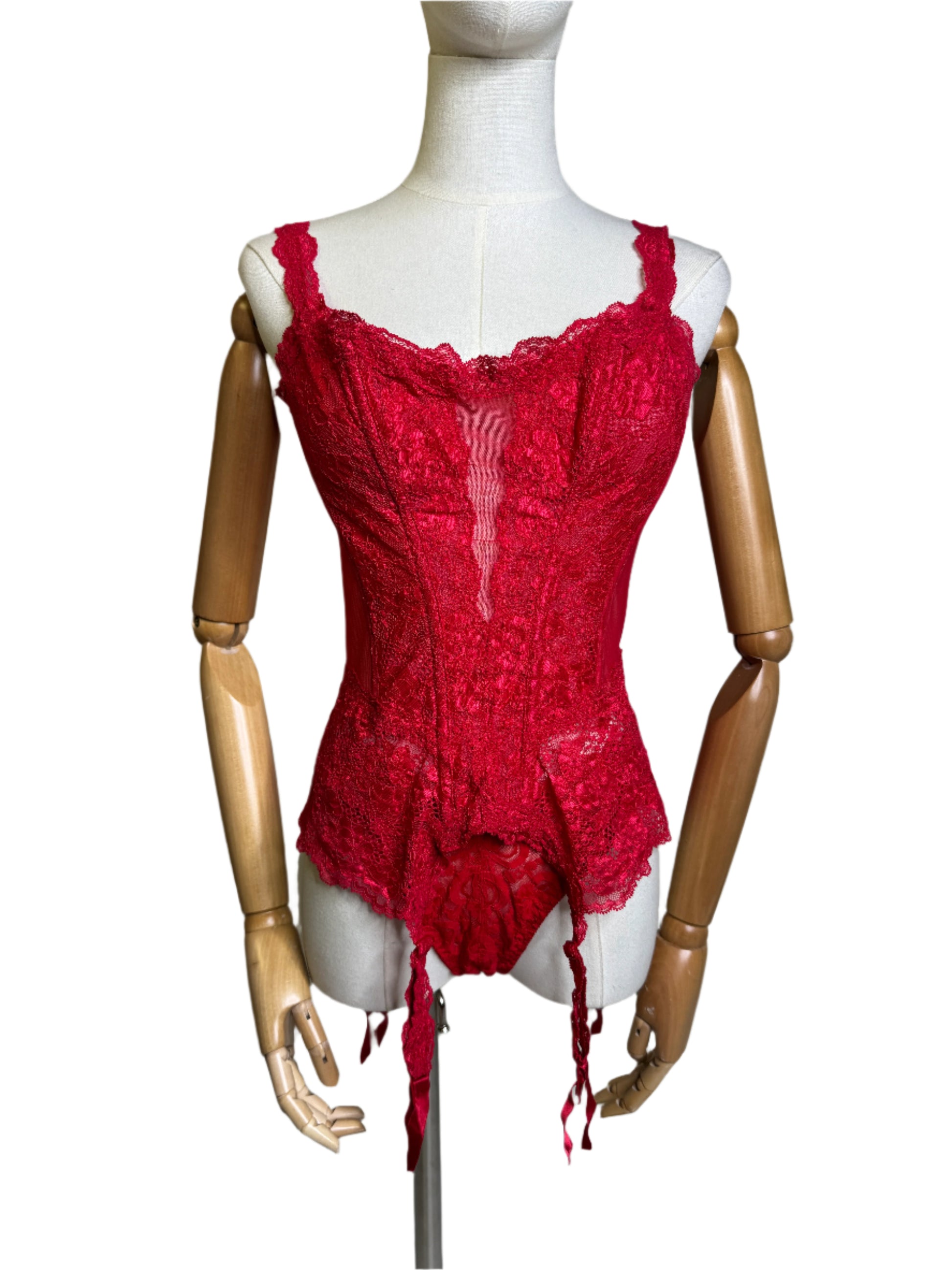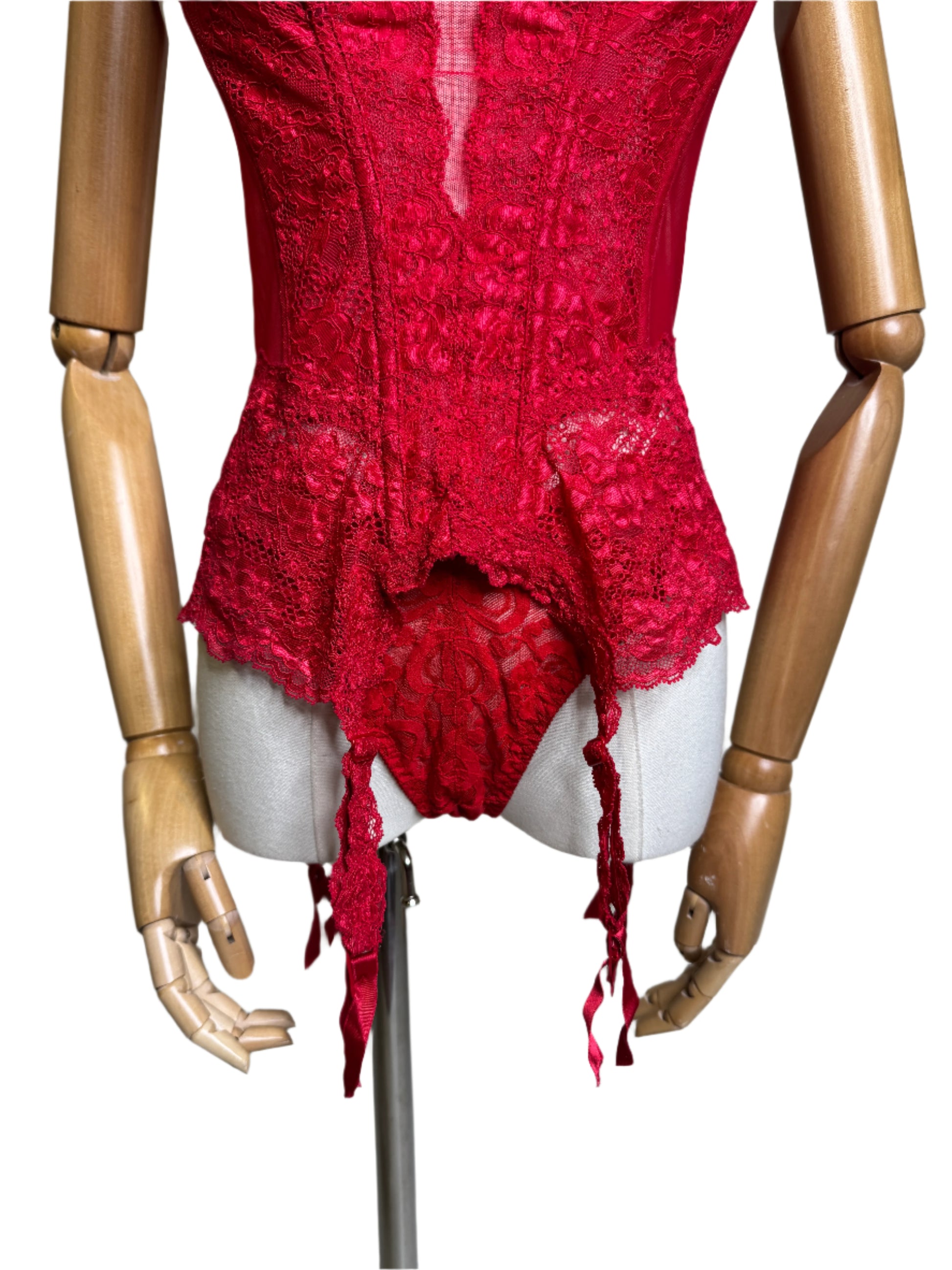 Christian Dior Red Sheer Lace Corset & Panty Set 1980s