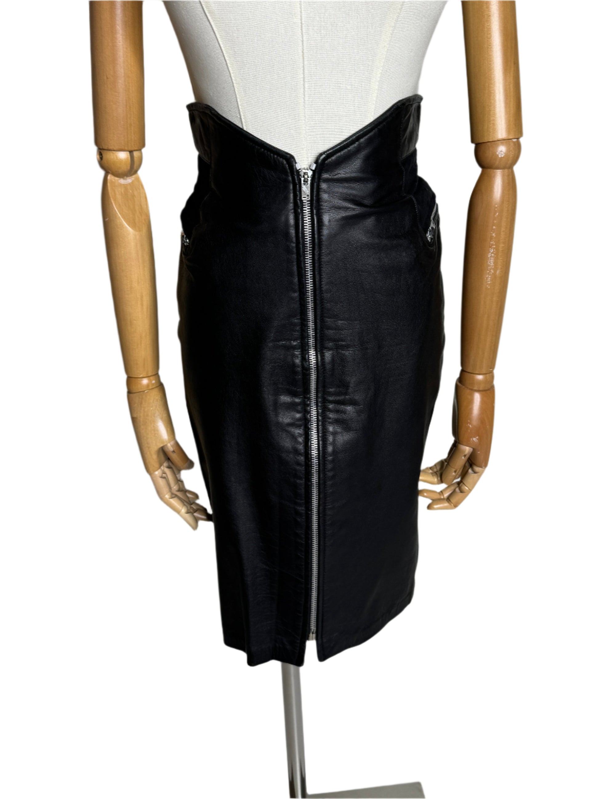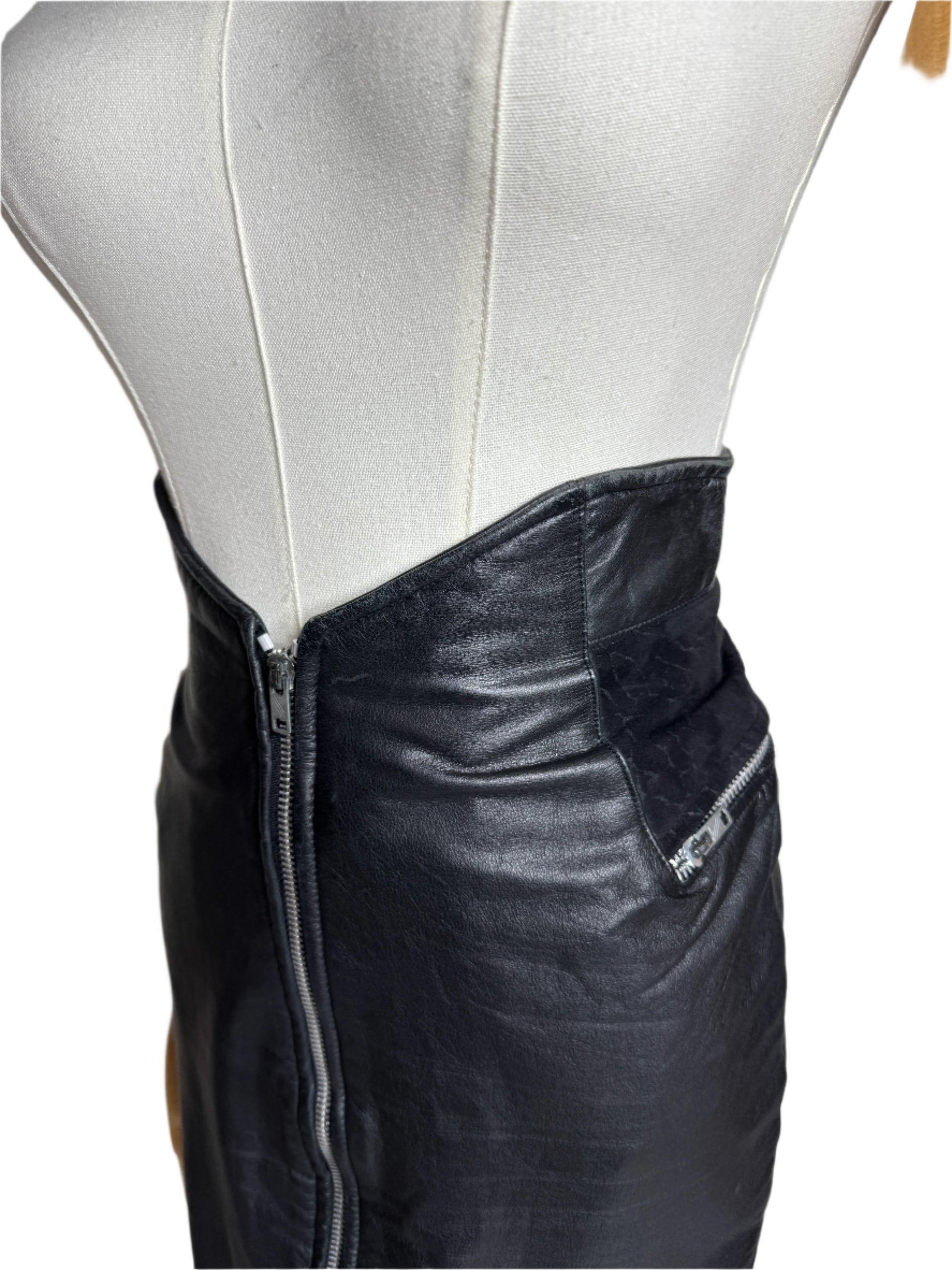 DD Black Leather Pencil Skirt w/ Exterior Zipper 1980s