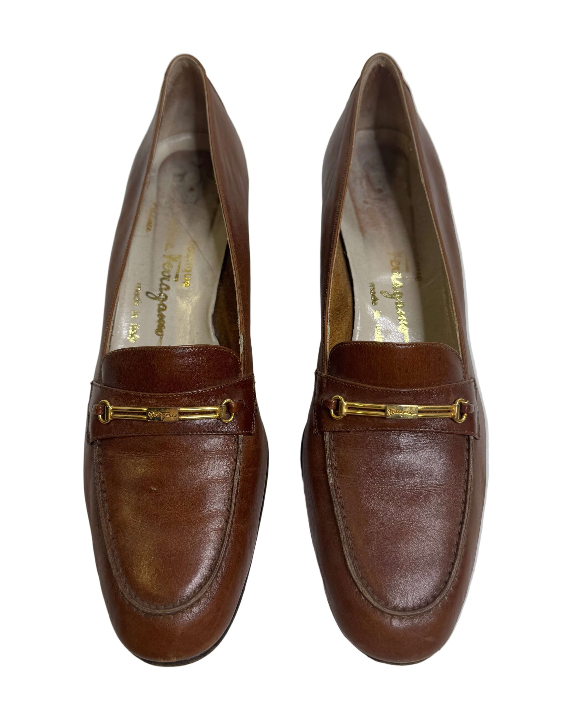 Ferragamo Brown Leather Heels 70s