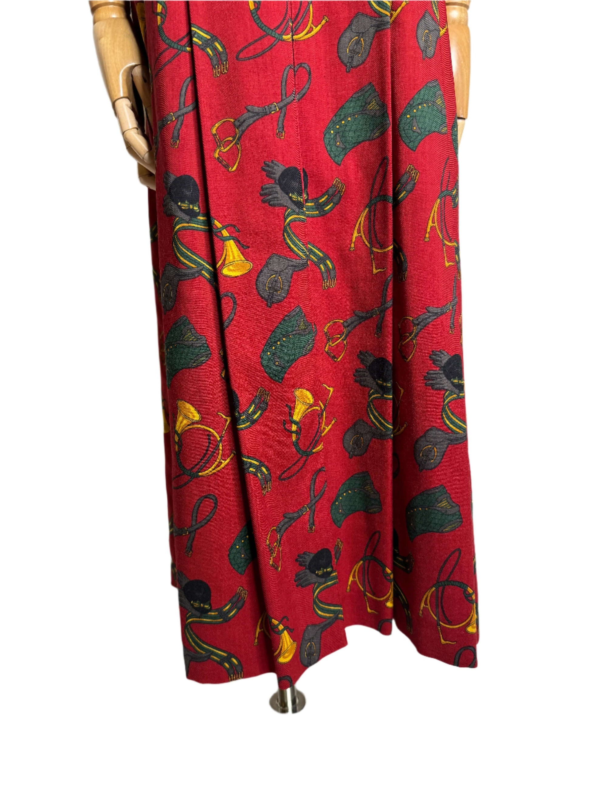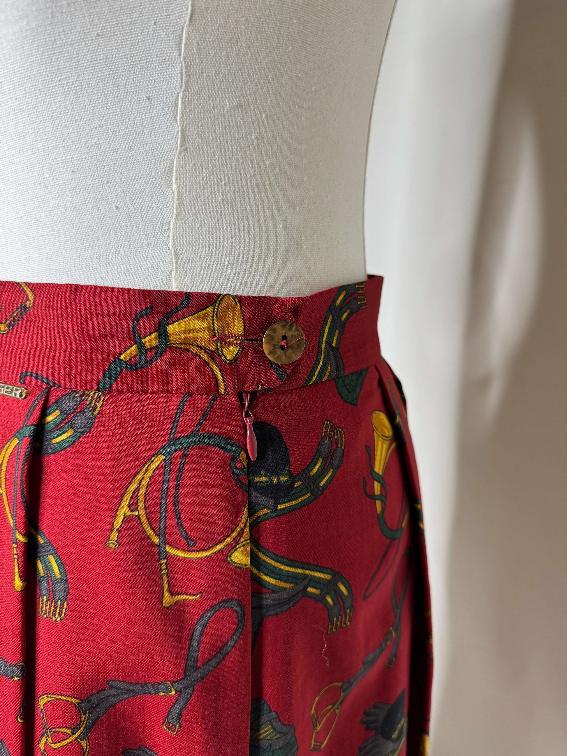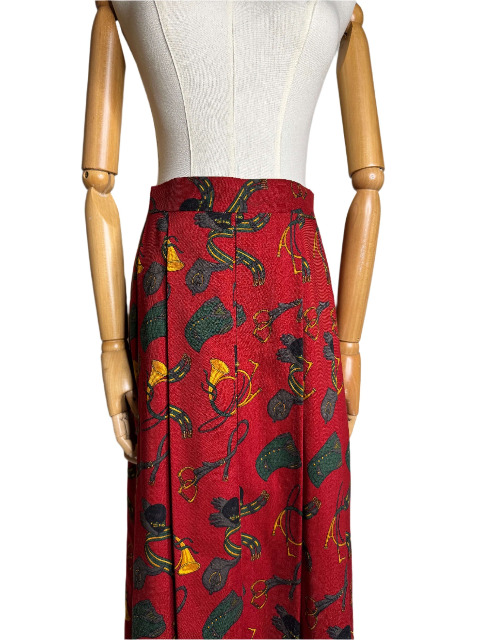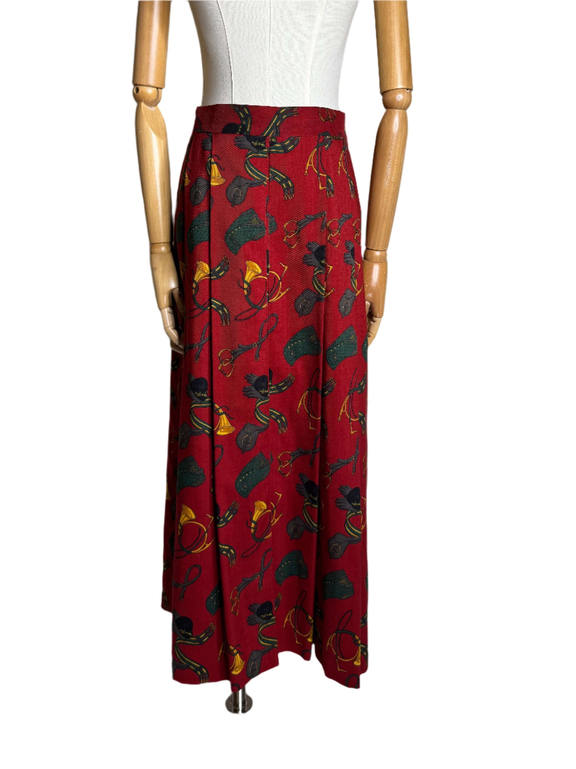 This 1980s horn printed skirt is just darling. This is the perfect whimsical pleated midi to add to your Vintage collection! The deep red makes this a fabulous fall/winter piece with tons of styling potential.
