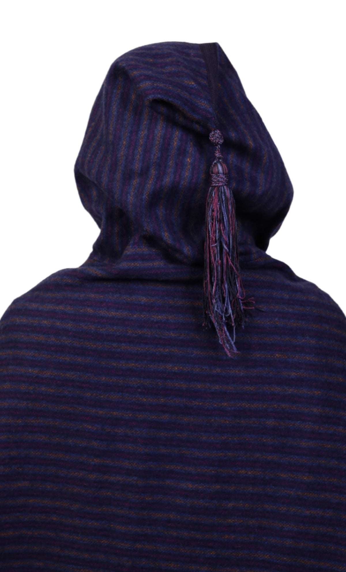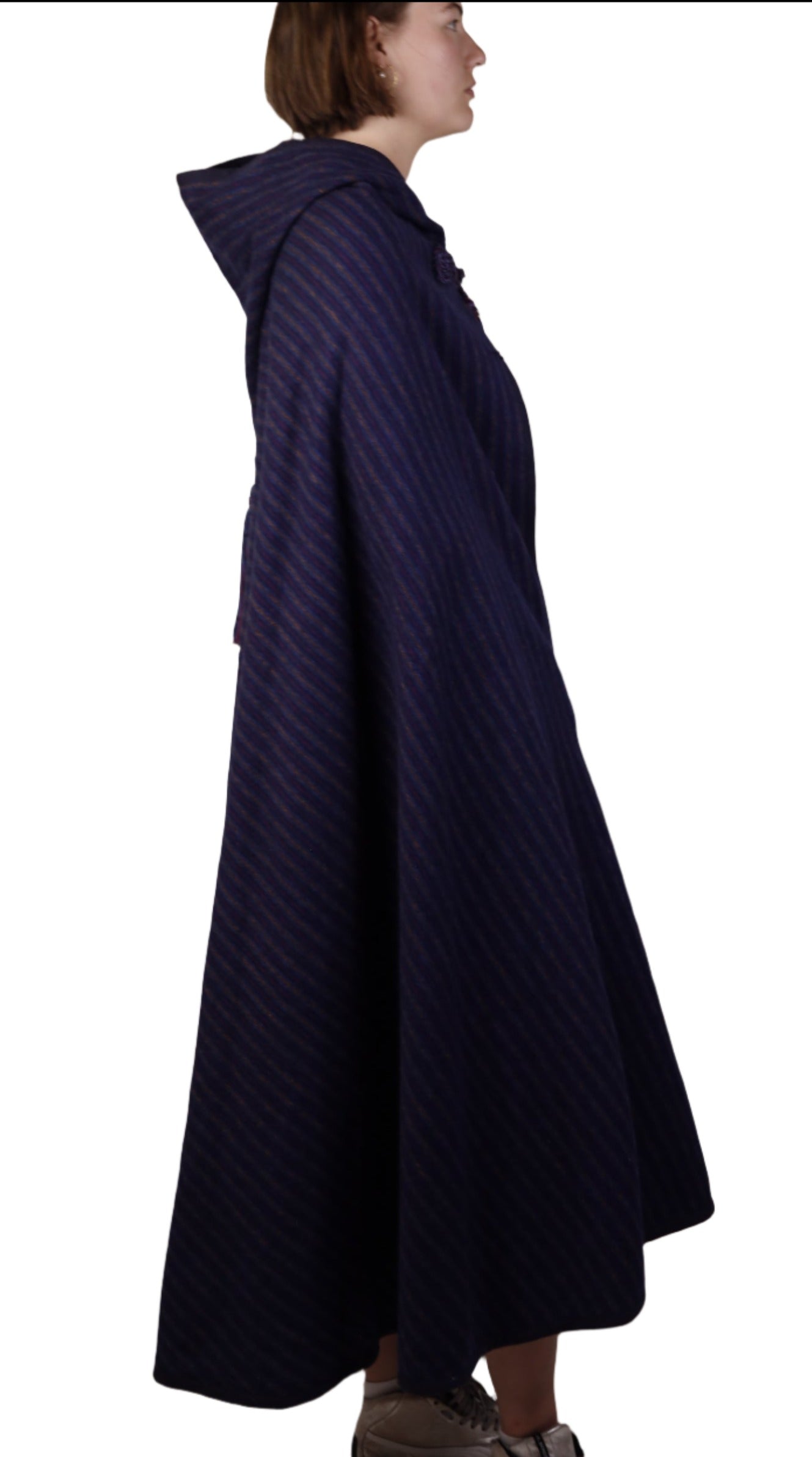 We stumbled upon this gorgeous wool cape in Nashville, owned by Nancy Lee Andrews, photographer and fiancee of Ringo Starr. Nancy shared that Ringo purchased this cape for her in Monte Carlo in 1970. Well made, Thoughtful lines, running vertically from the front and horizontally from the back. Stay warm or just incognito with large tasseled hood. This is a rock n roll treasure and your chance to own the iconic vintage cape of luxury.